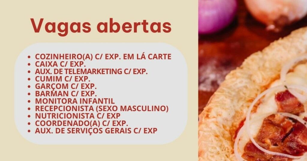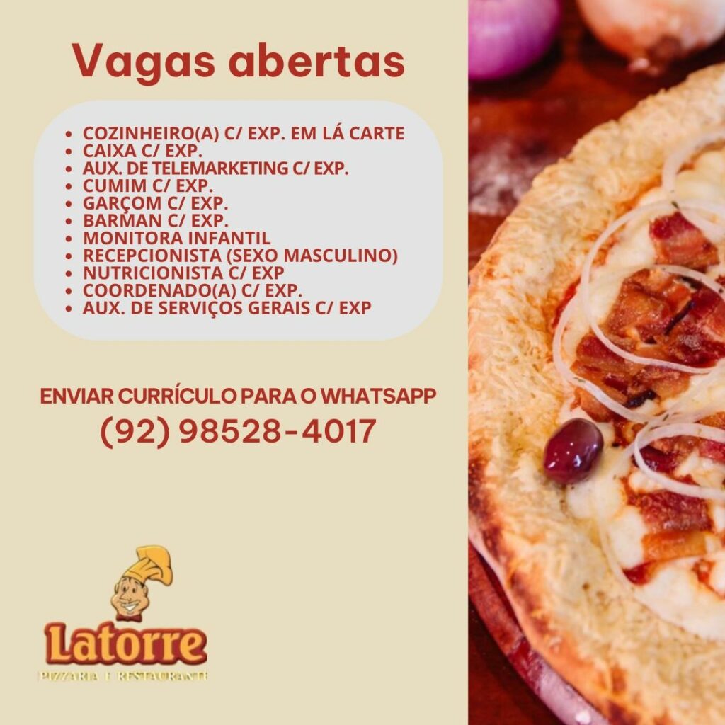 Pizzaria seleciona para vagas de emprego em Manaus