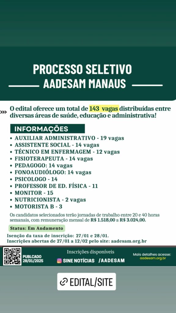 • Processo seletivo aberto para Distrito de Saúde Indígena de Manaus; Confira os cargos disponíveis