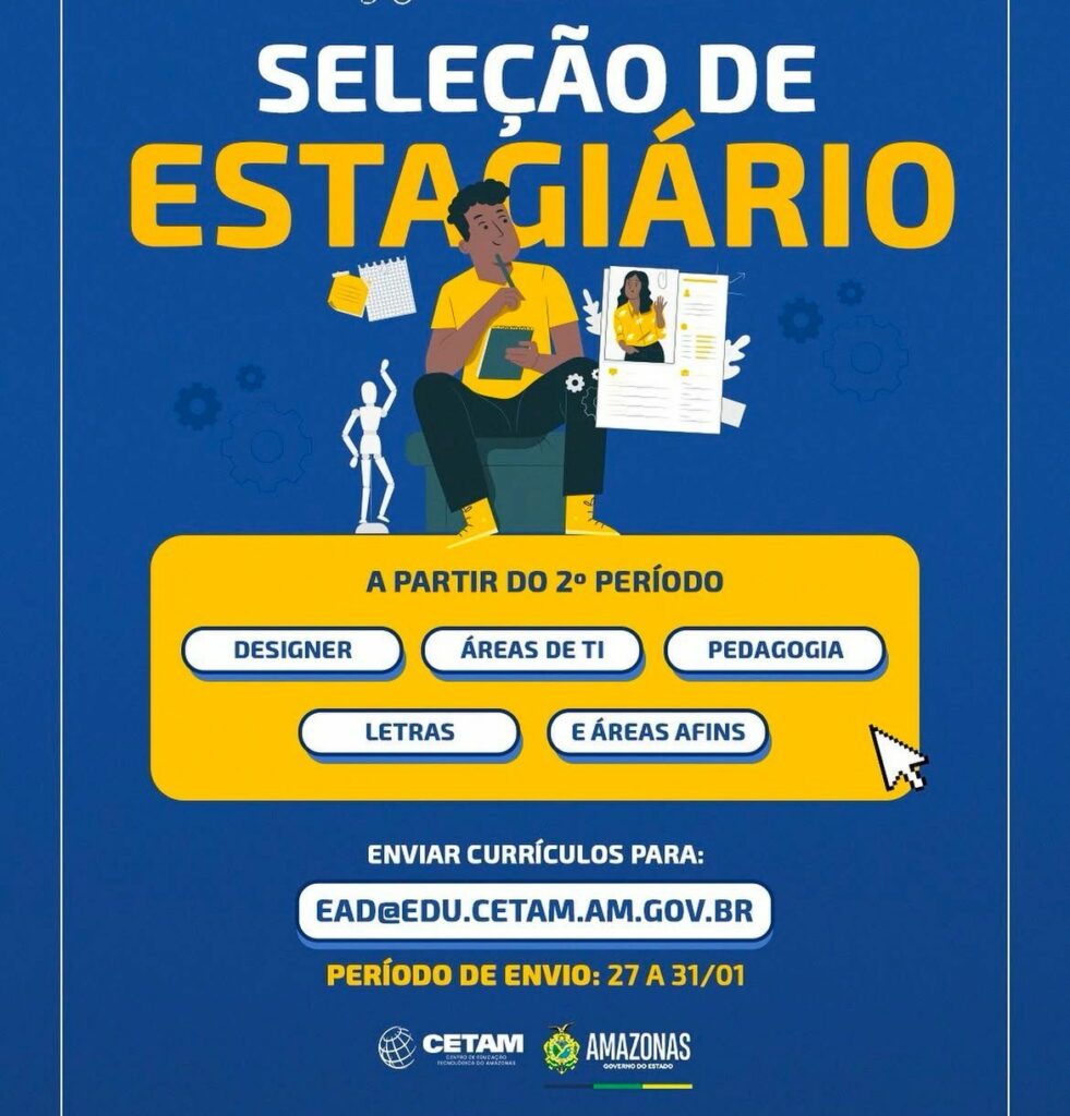 Processos seletivo para Estagiários Designer, Áreas de TI, Pedagogia, Letras, Áreas afins; Envie seu currículo!