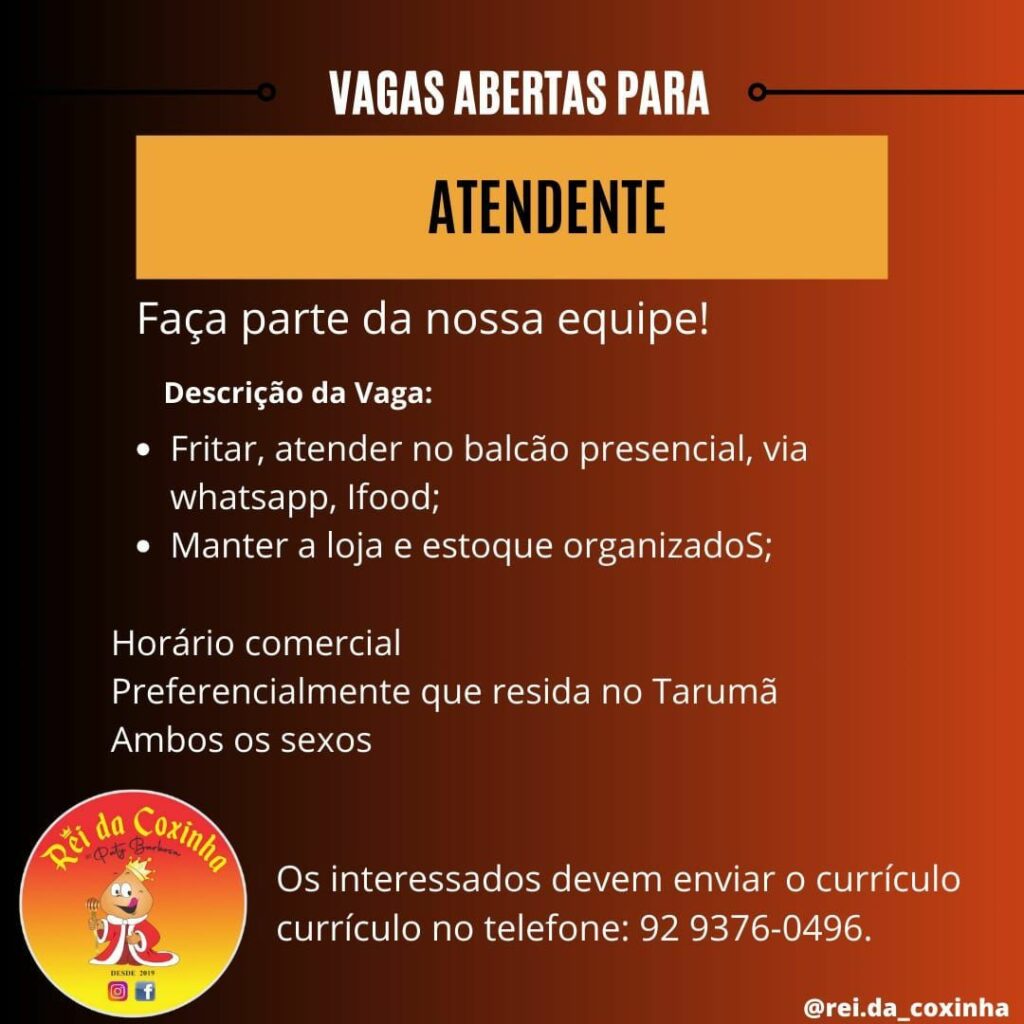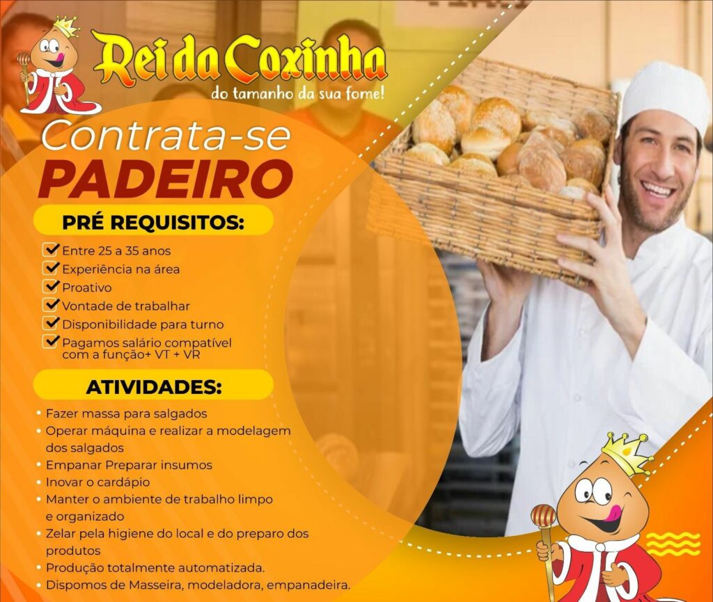 Rei da coxinha seleciona Atendente, Padeiro; Envie seu currículo!