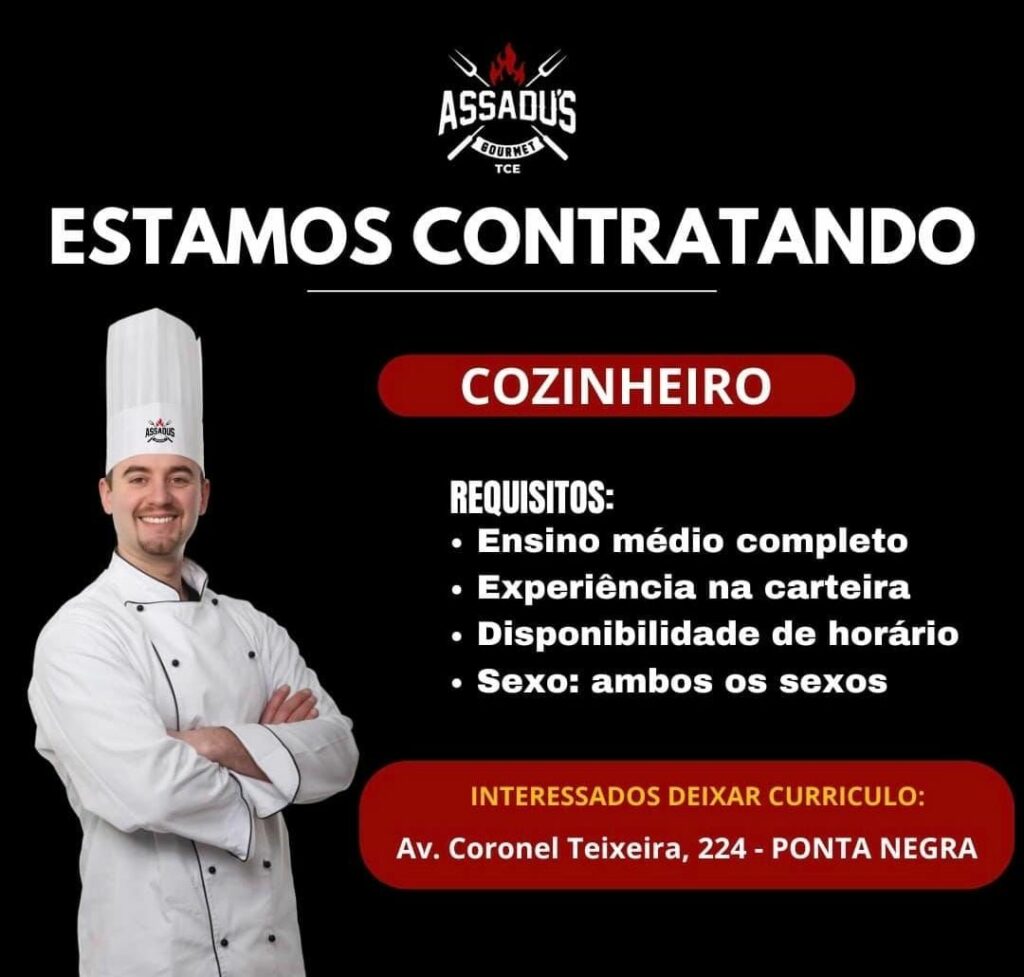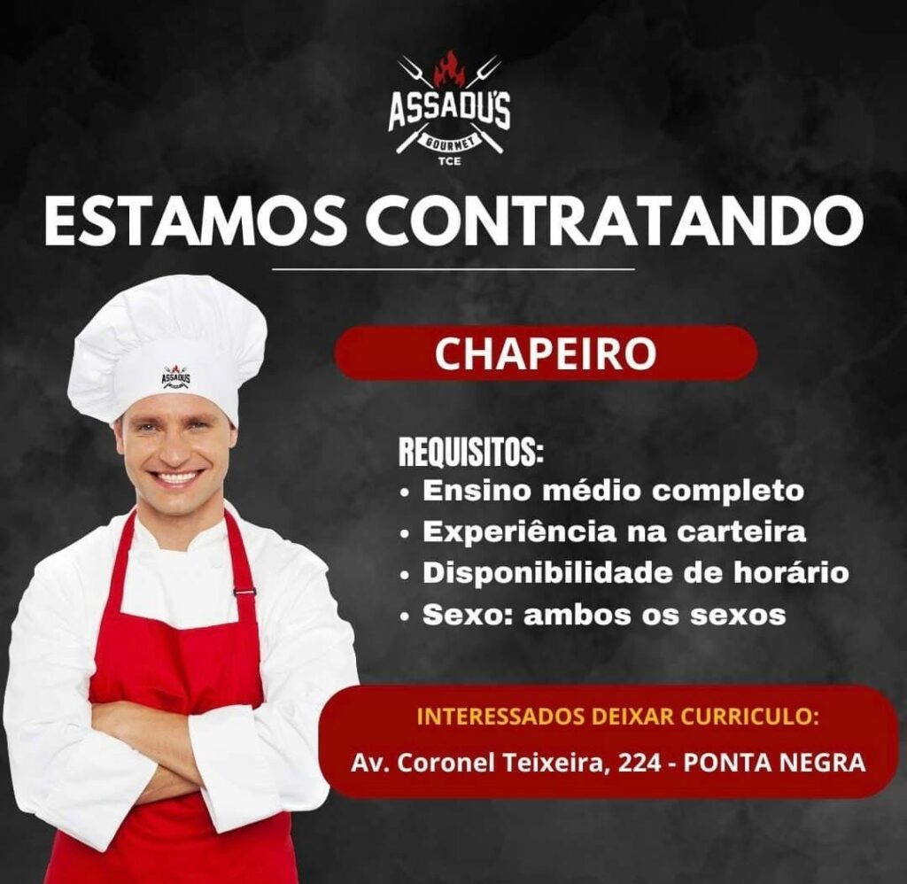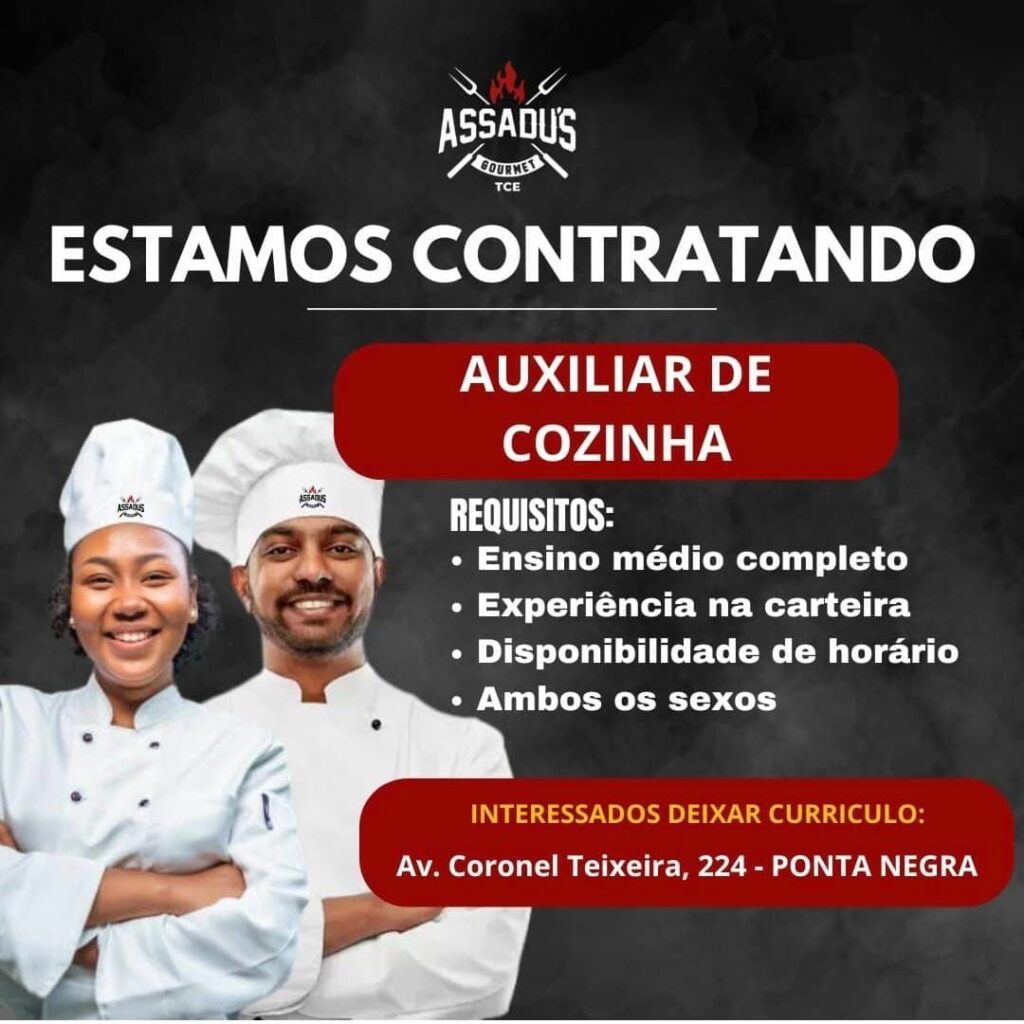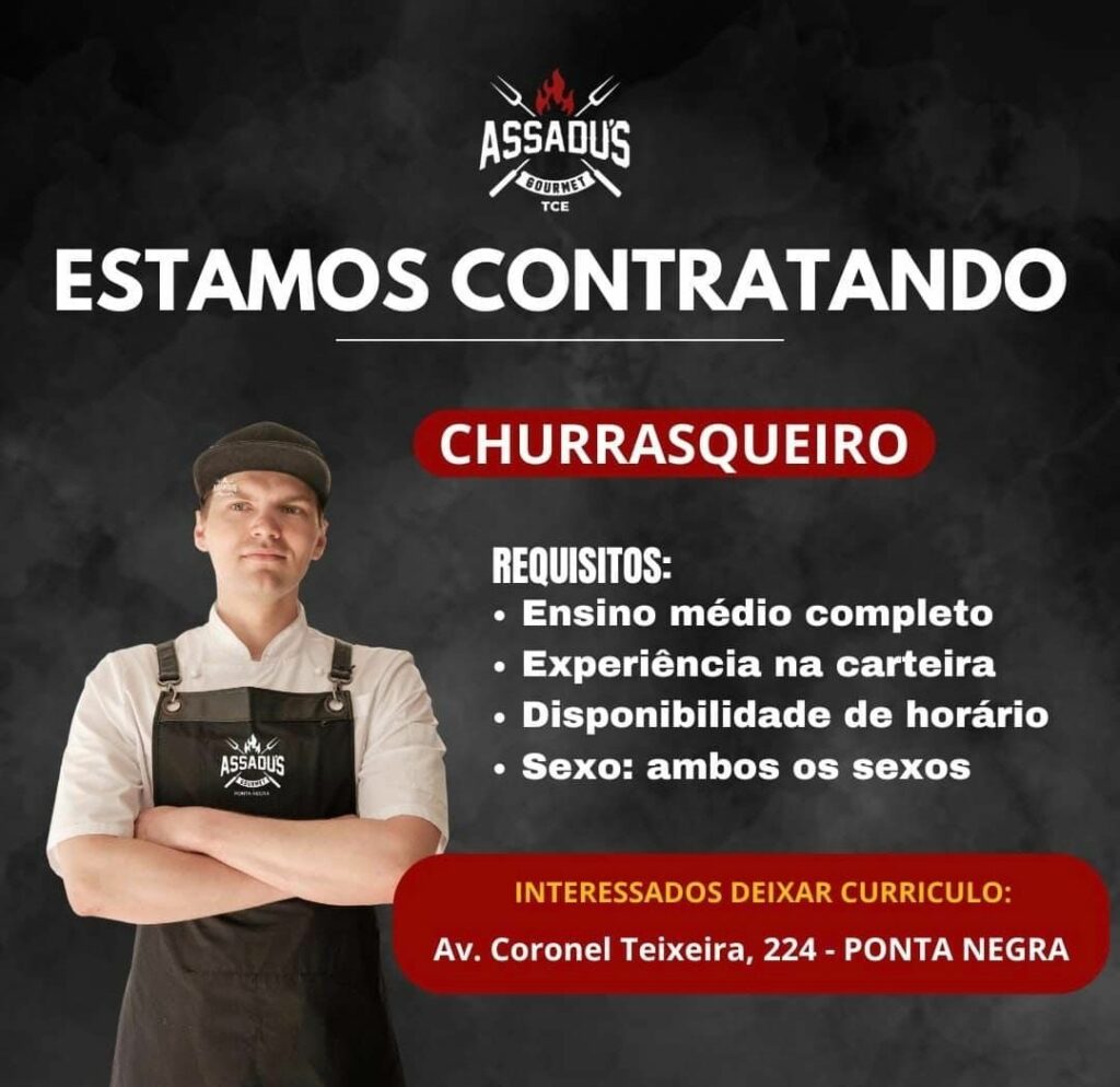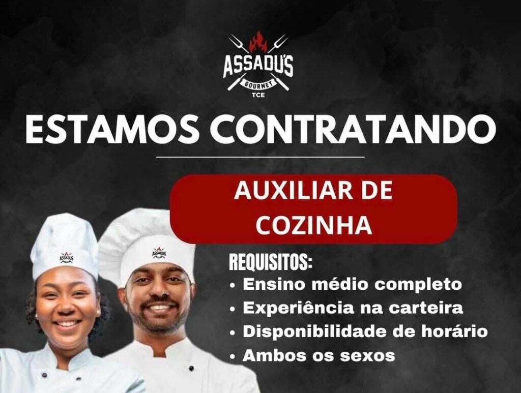 Restaurante assadus seleciona Auxiliar de cozinha, Cozinheiro, Chapeiro, Churrasqueiro; Envie seu currículo!
