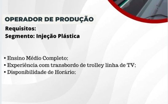 Empresa deseja contratar Operador de produção; Envie seu currículo!