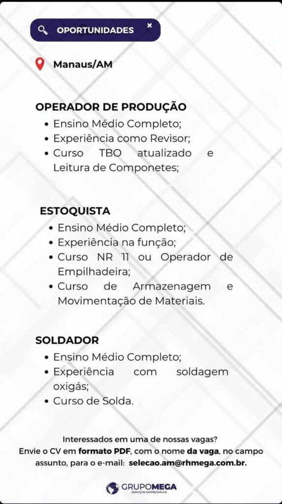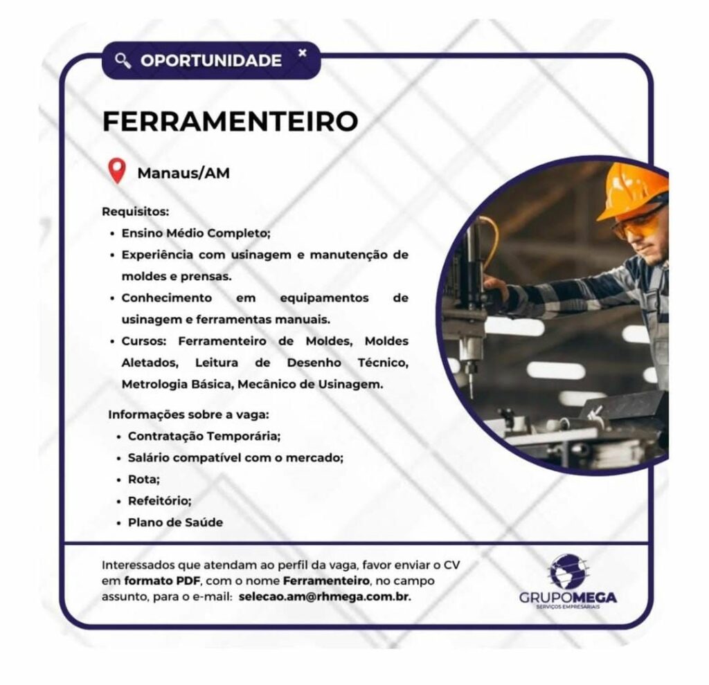 Rh seleciona Operador de produção, Estoquista, Soldador, Ferramenteiro; Envie seu currículo!