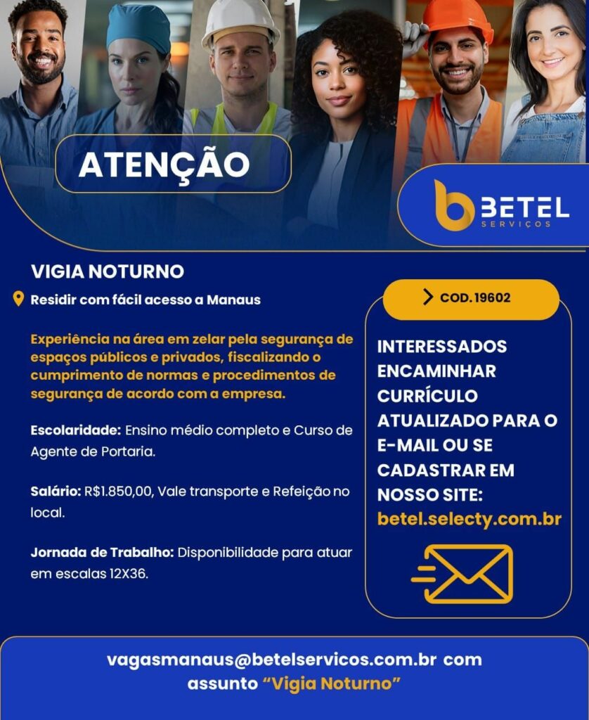 Rh seleciona para vaga de Vigia noturno; Envie seu currículo!