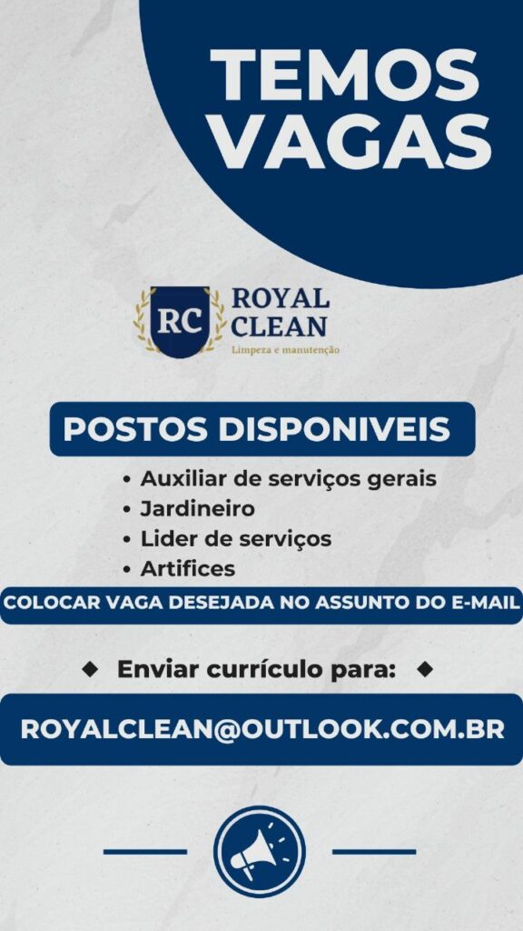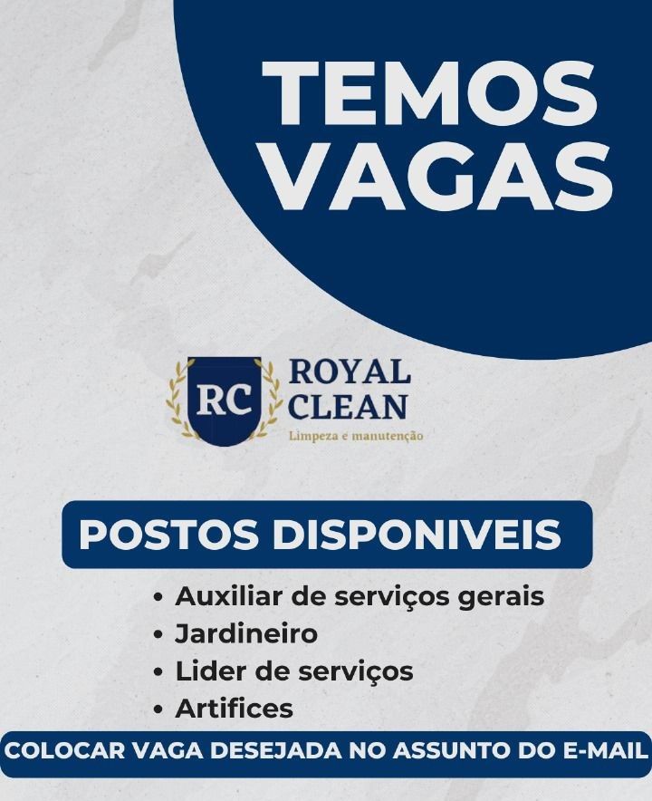 Royal Clean seleciona Auxiliar de serviços gerais, Jardineiro, Líder de serviços, Artífices; Envie seu currículo!