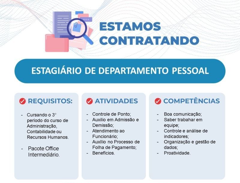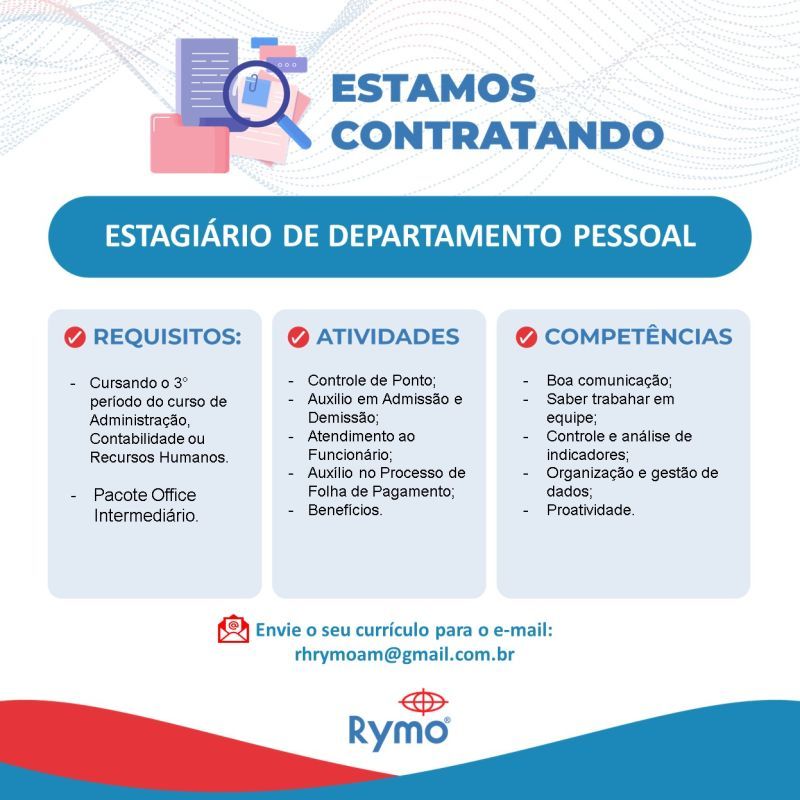 Rymo seleciona para vaga de Estagiário de departamento pessoal; Envie seu currículo!