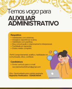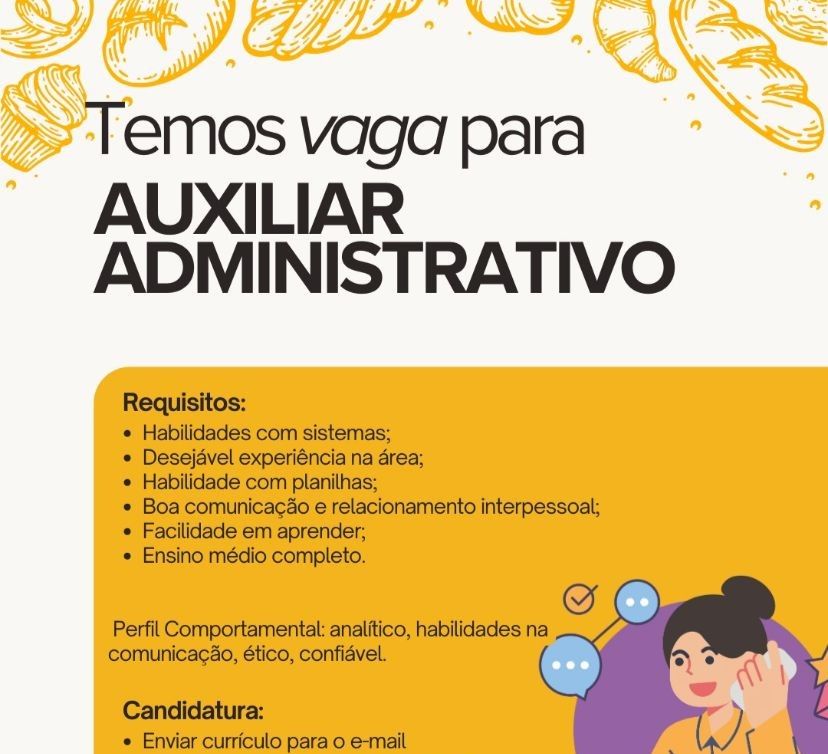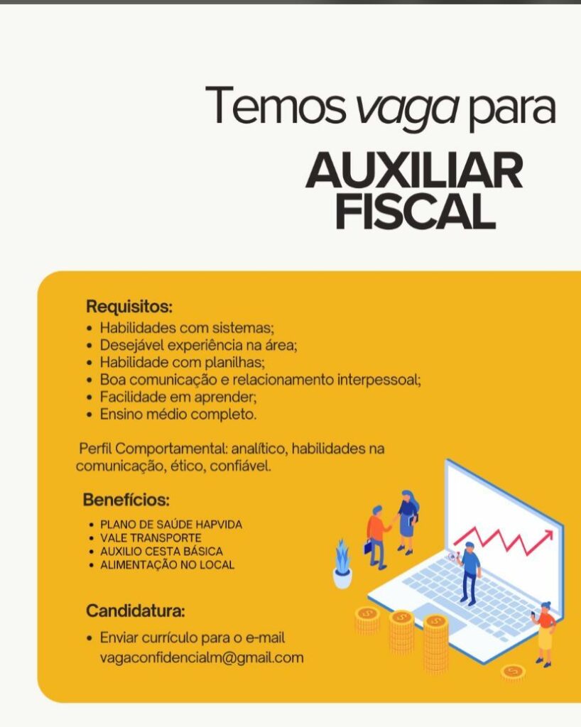Seleção para seguintes vagas Auxiliar fiscal, Auxiliar administrativo; Envie seu currículo!
