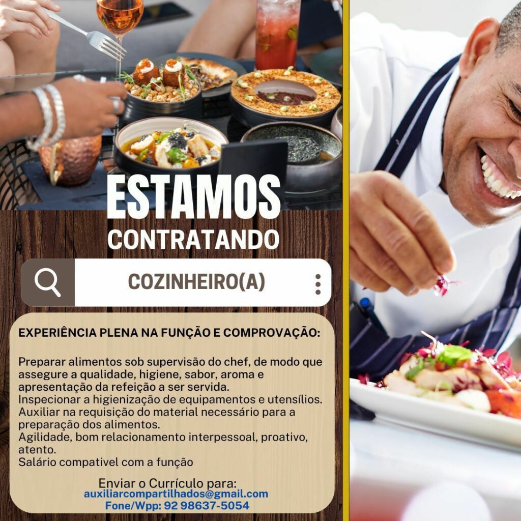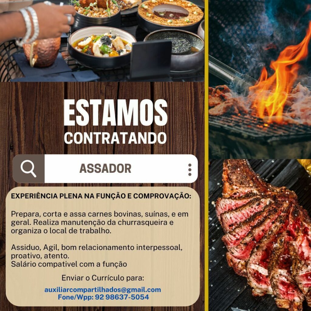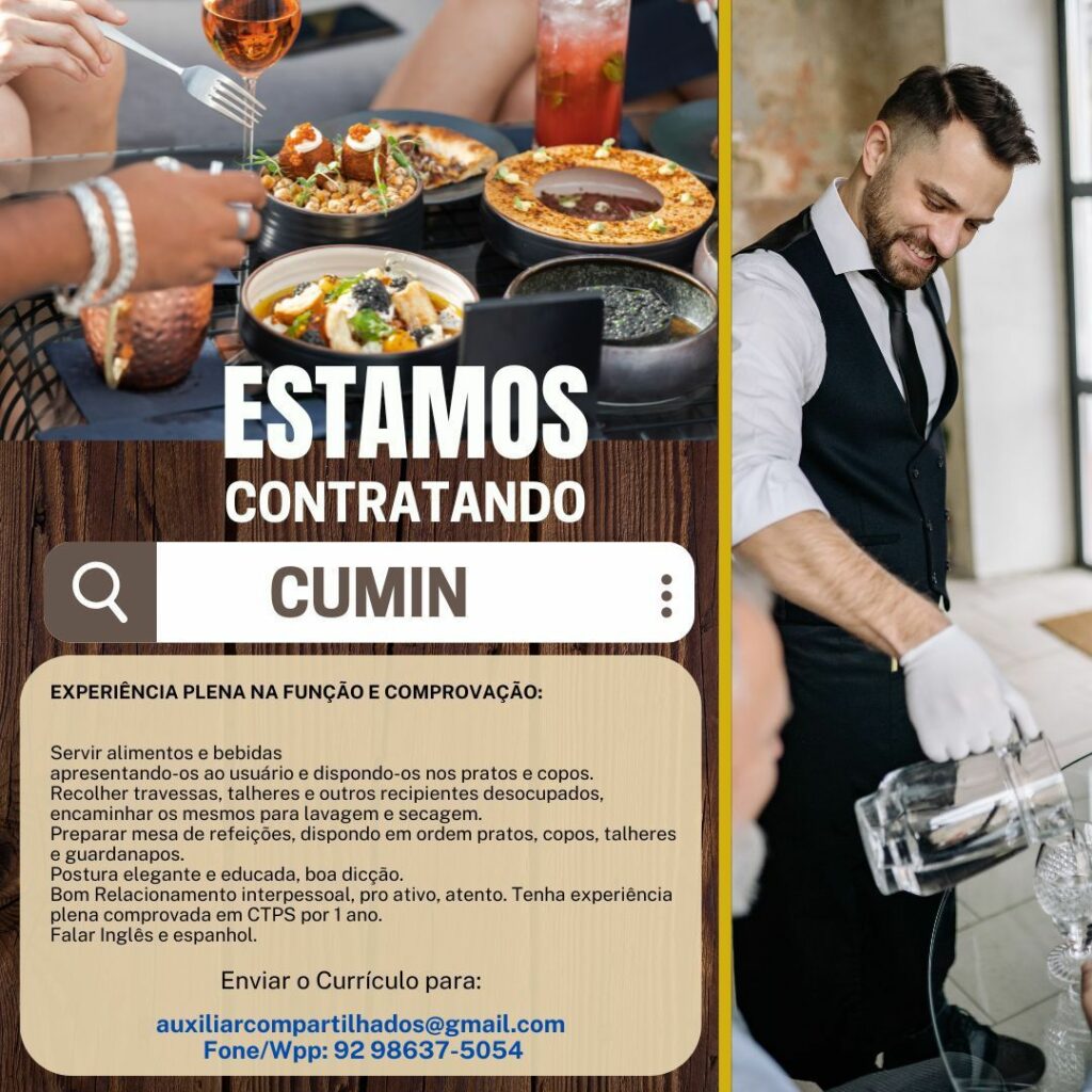 Seleção para seguintes vagas Cumin, Cozinheiro (a), Assador, Garçom; Envie seu currículo!