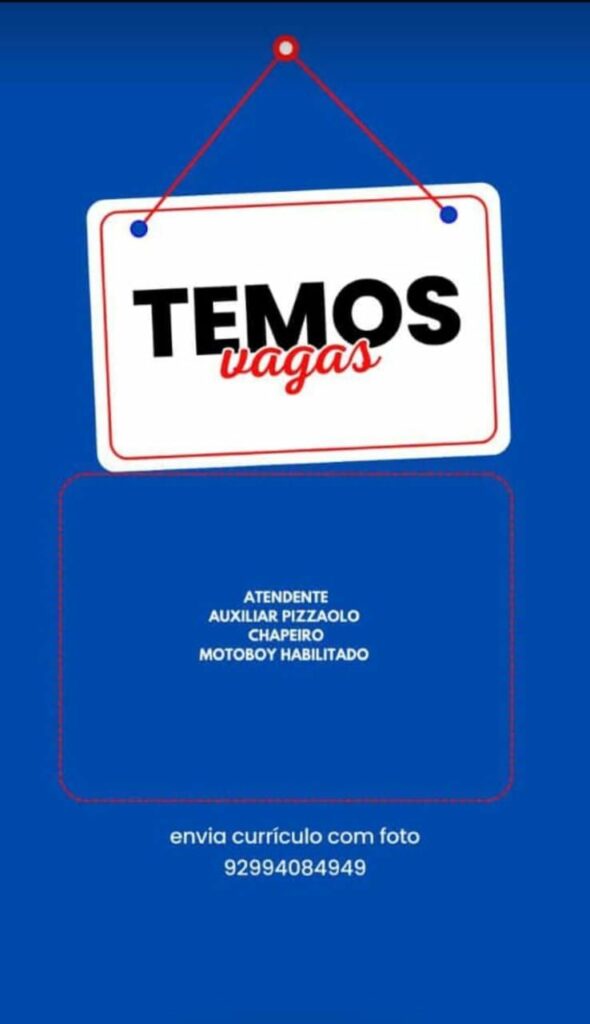 Seleção para vaga de Atendente, Pizzaiolo, Chapeiro, Motoboy; Envie seu currículo!