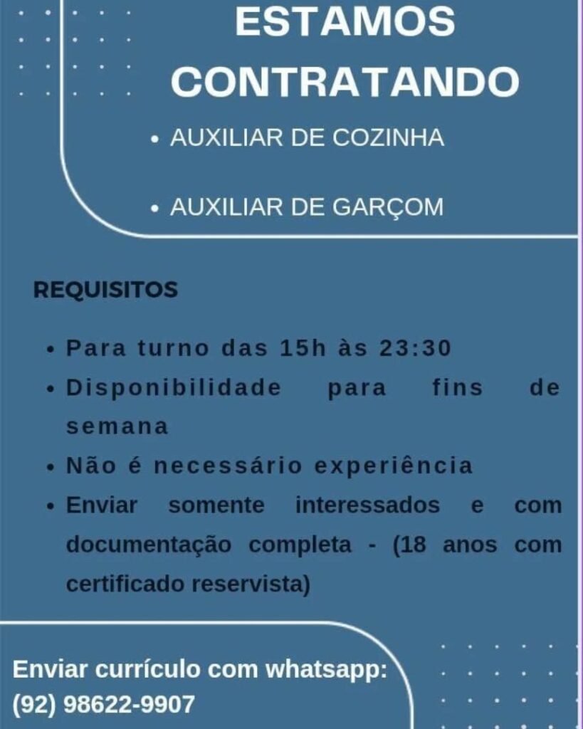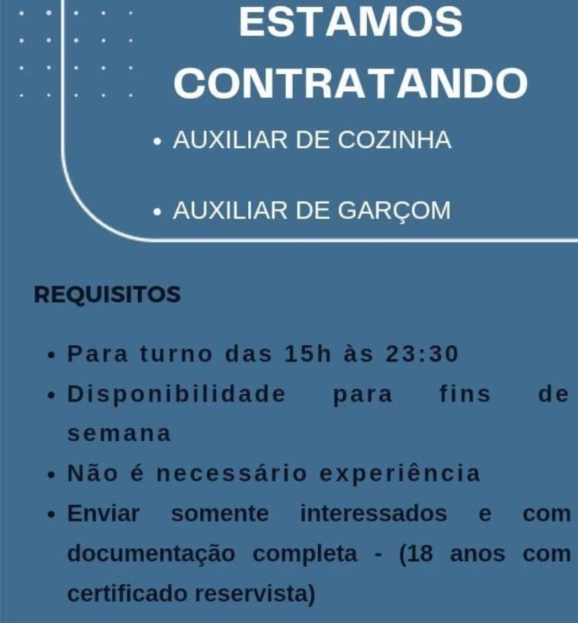 Seleção para vaga de Auxiliar de cozinha, Auxiliar de garçom; Envie seu currículo!