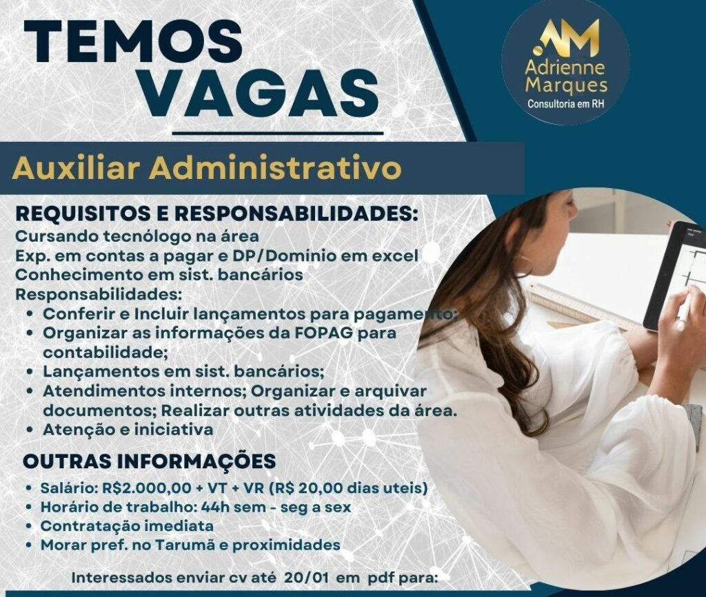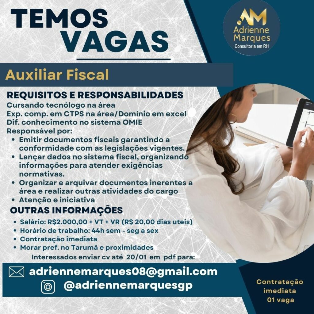 Seleção para vaga de Auxiliar fiscal, Faturista, Auxiliar administrativo; Envie seu currículo!