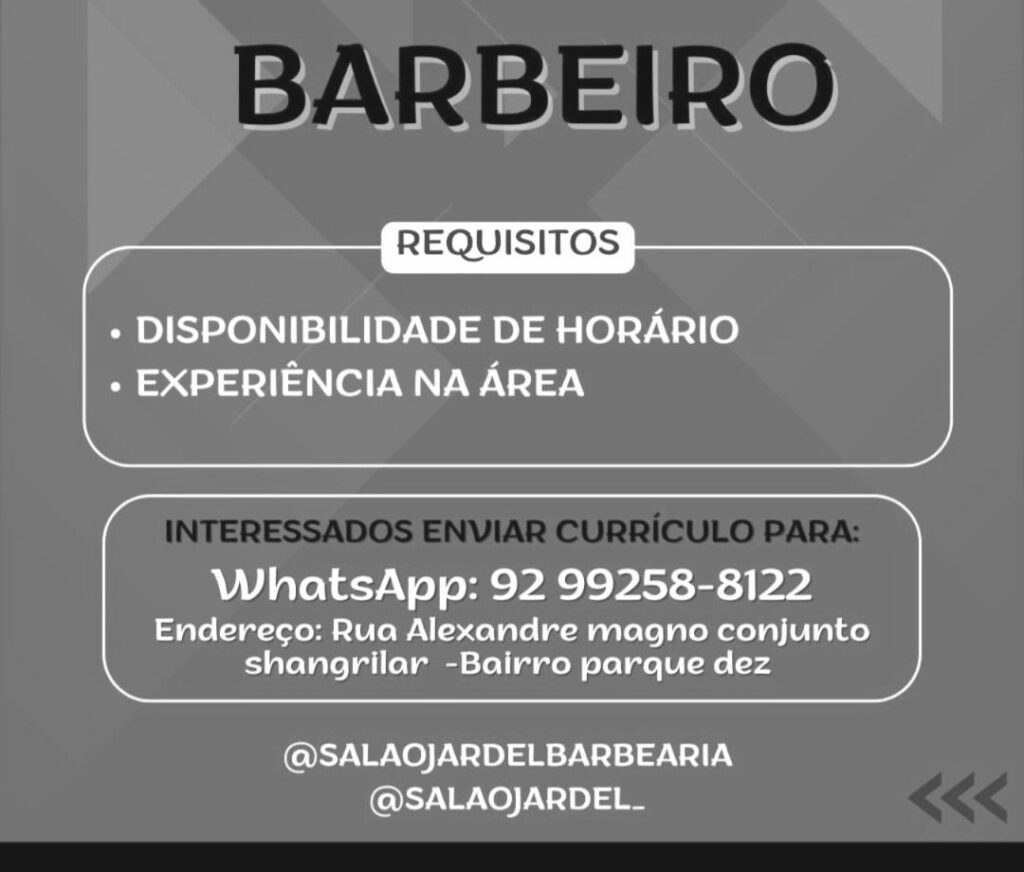 Seleção para vaga de Barbeiro; Envie seu currículo!