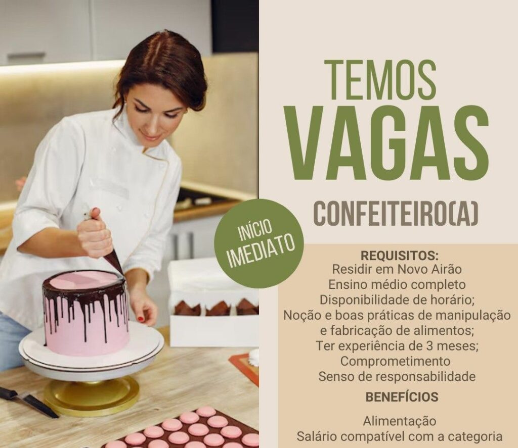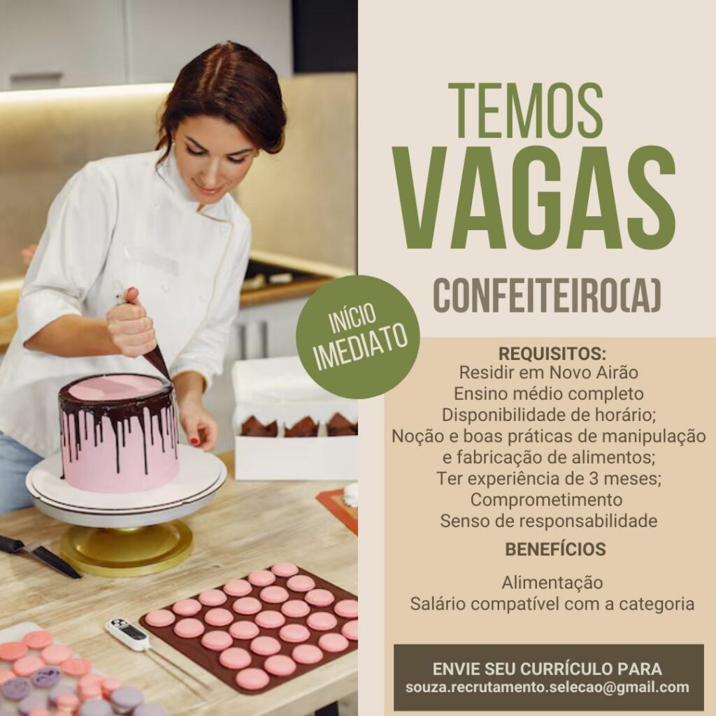 Seleção para vaga de Confeiteiro (a); Envie seu currículo!