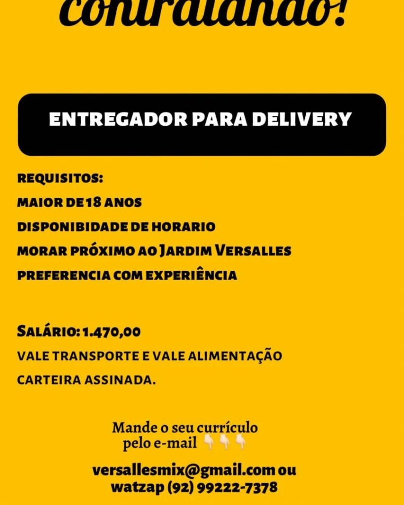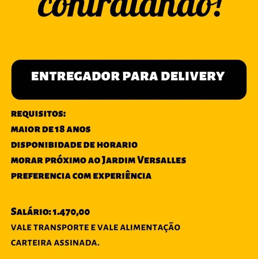 Seleção para vaga de Entregador para delivery; Envie seu currículo!