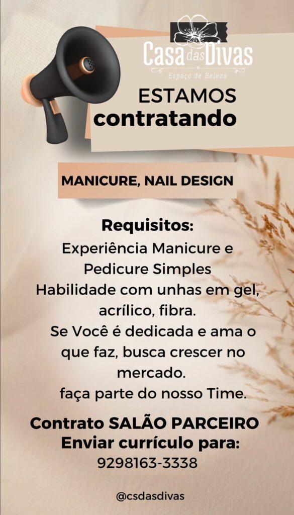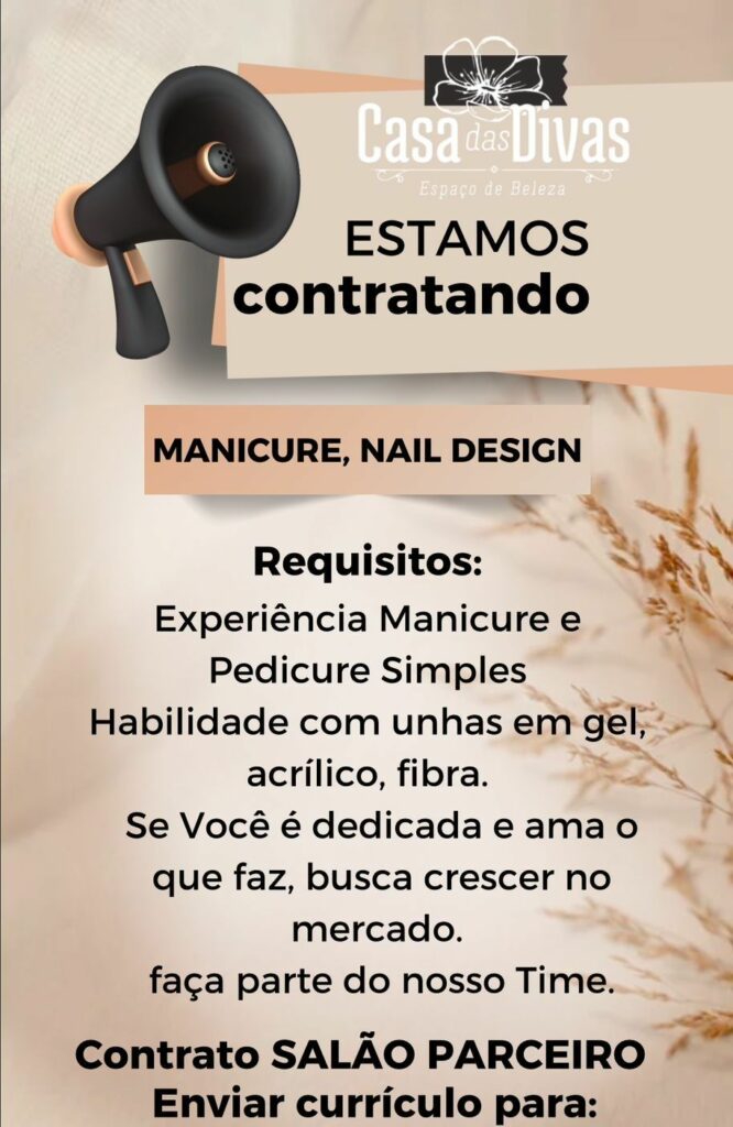 Seleção para vaga de Manicure nail design; Envie seu currículo!