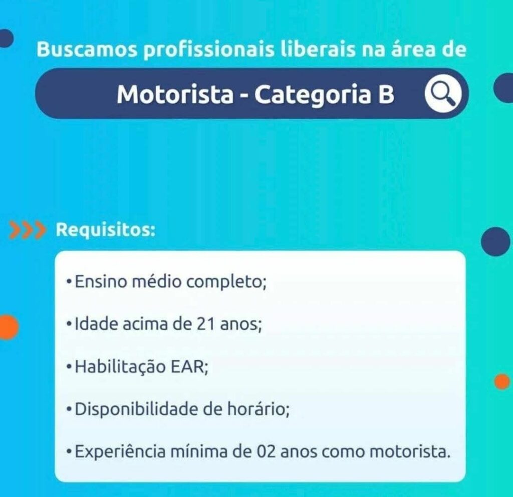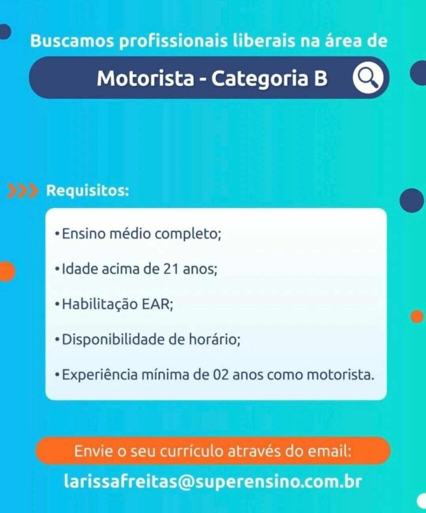 Seleção para vaga de Motorista Categoria B; Envie seu currículo!