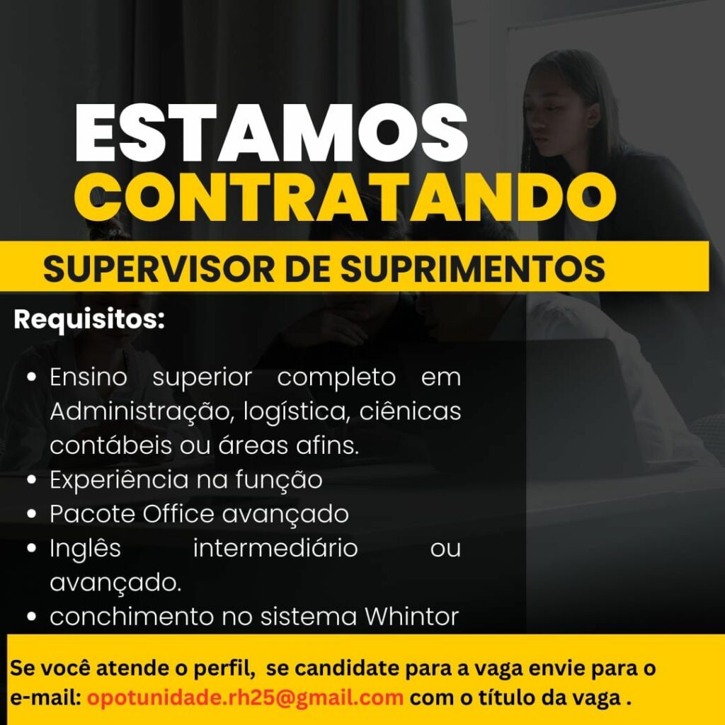 Seleção para vaga de Supervisor de Suprimentos; Envie seu currículo!