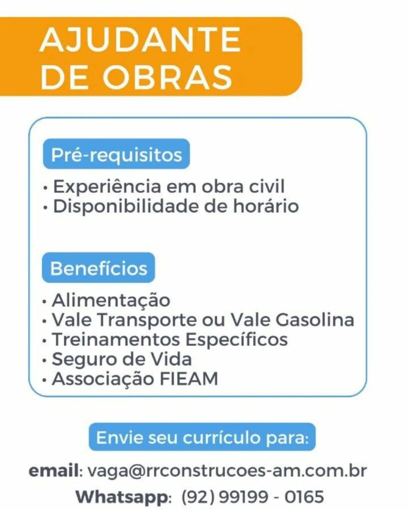 • Hospital Santa Júlia abre vaga para maqueiro em Manaus