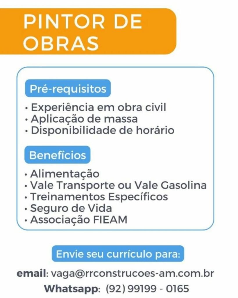 Seleção para vagas de Pintor de obras, Pedreiro, Ajudante de obras; Envie seu currículo!