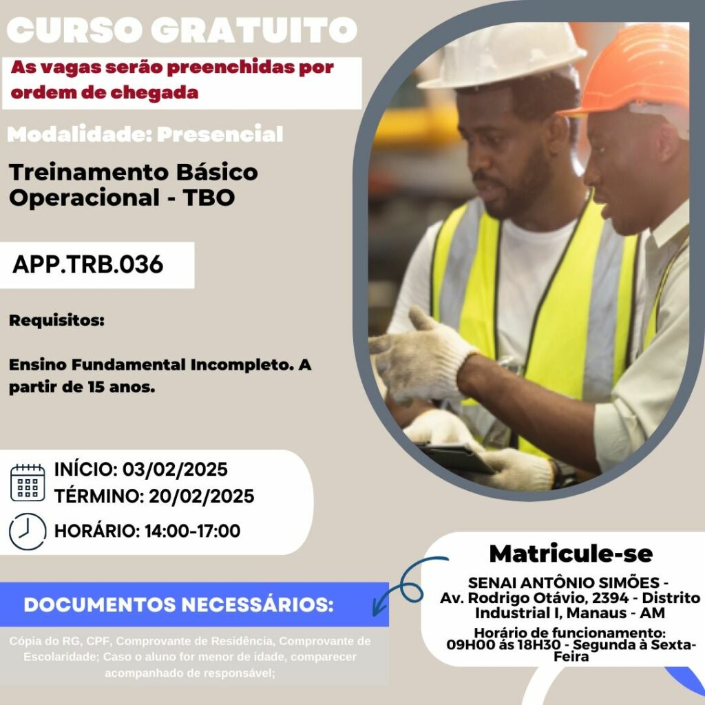 Curso gratuito de Técnico em Segurança do Trabalho abre vagas para Manaus