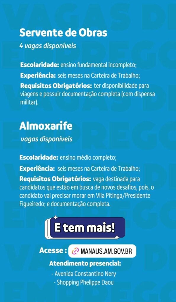 • Hospital Santa Júlia abre vaga para maqueiro em Manaus