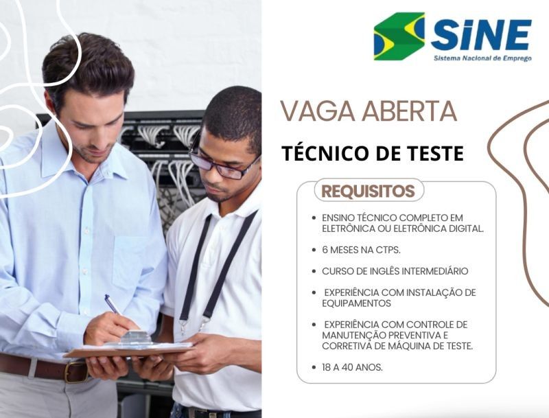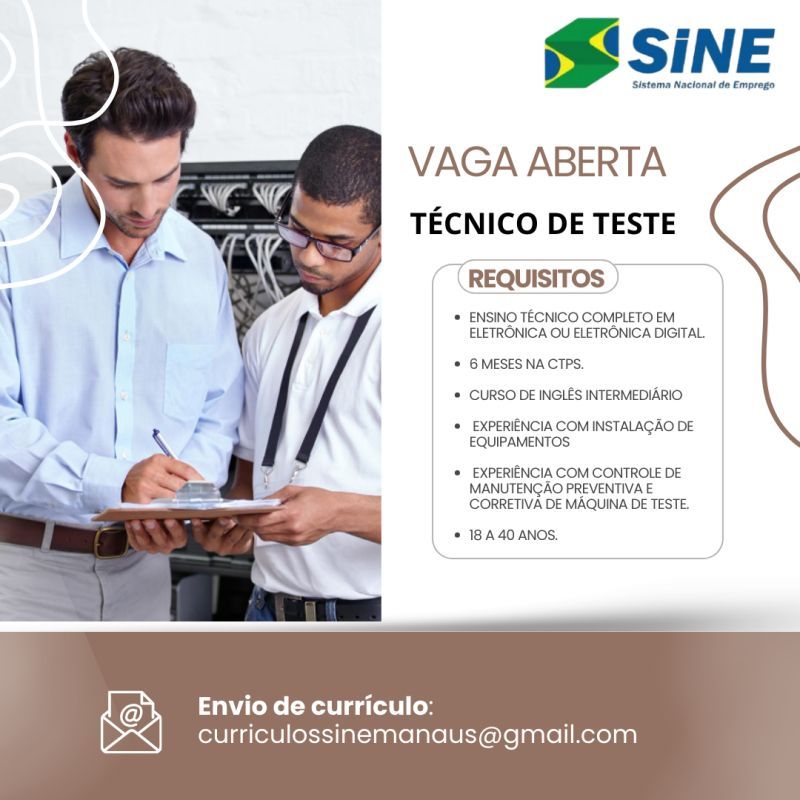 Sine está selecionando Técnico de teste; Envie seu currículo!