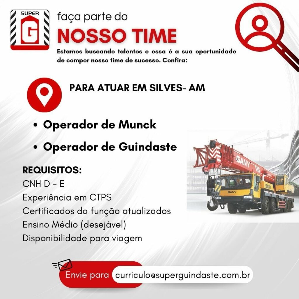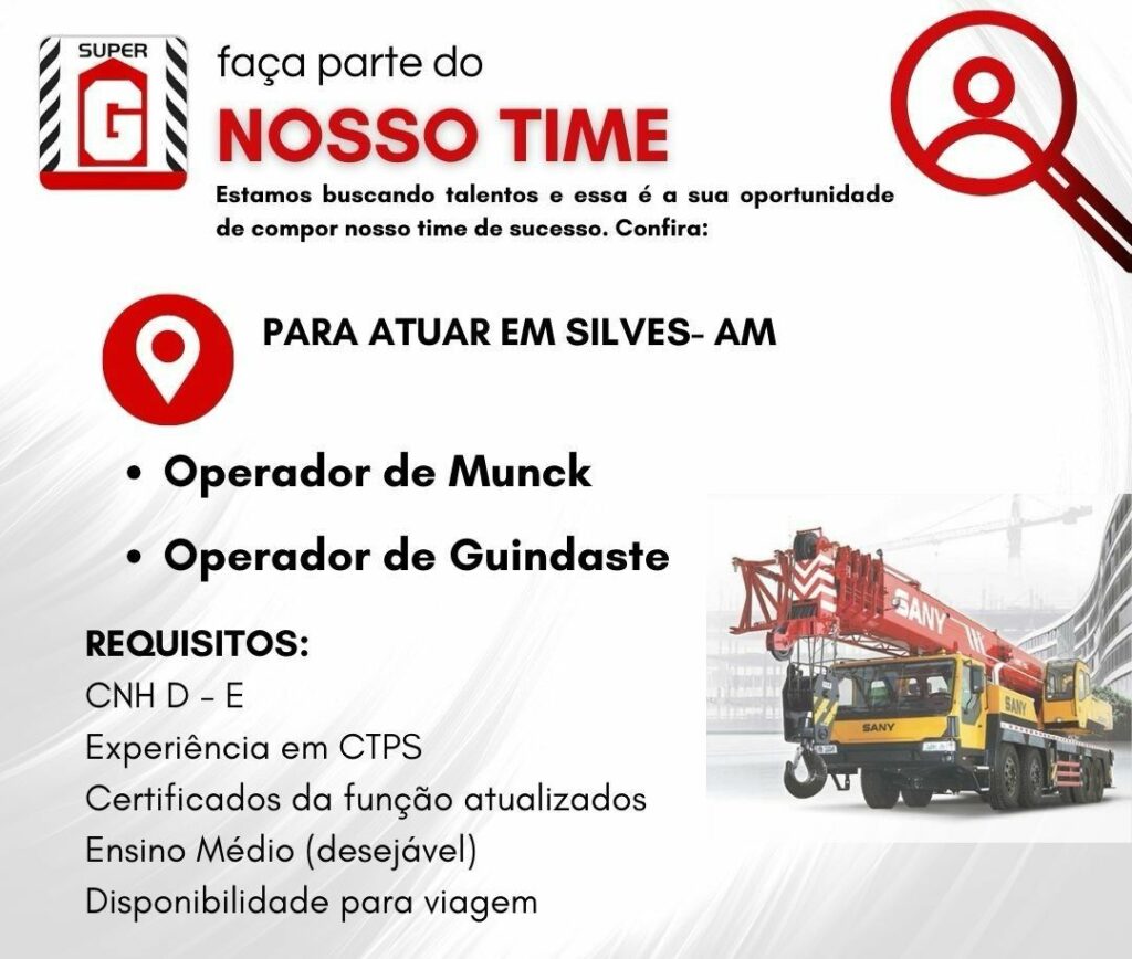 Super guindaste seleciona Operador de munck, Operador de guindaste; Envie seu currículo!