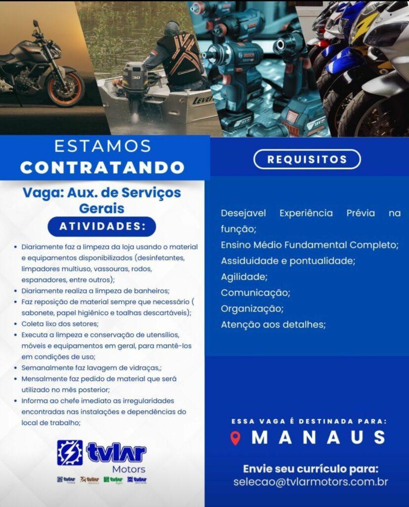 TV lar motors seleciona Auxiliar de serviços gerais; Envie seu currículo!