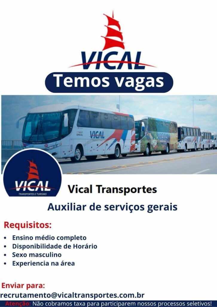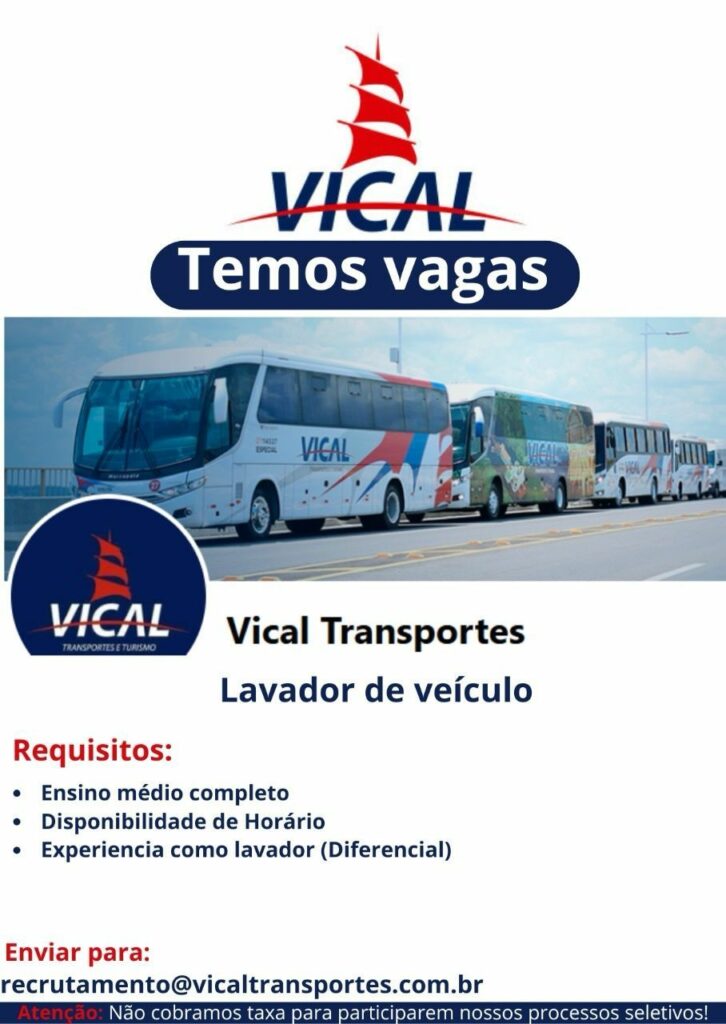 Vical transportes seleciona Auxiliar de serviços gerais, Lavador de veículos; Envie seu currículo!