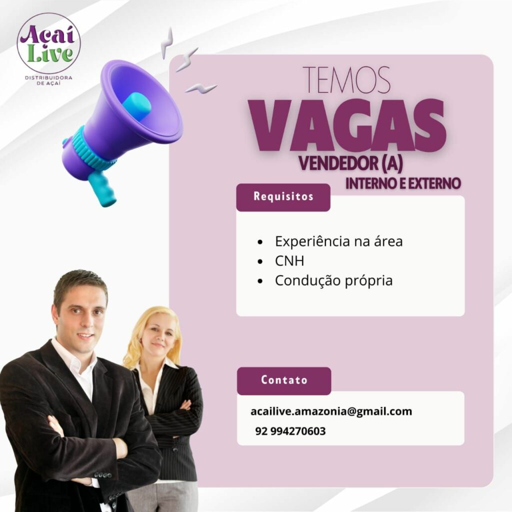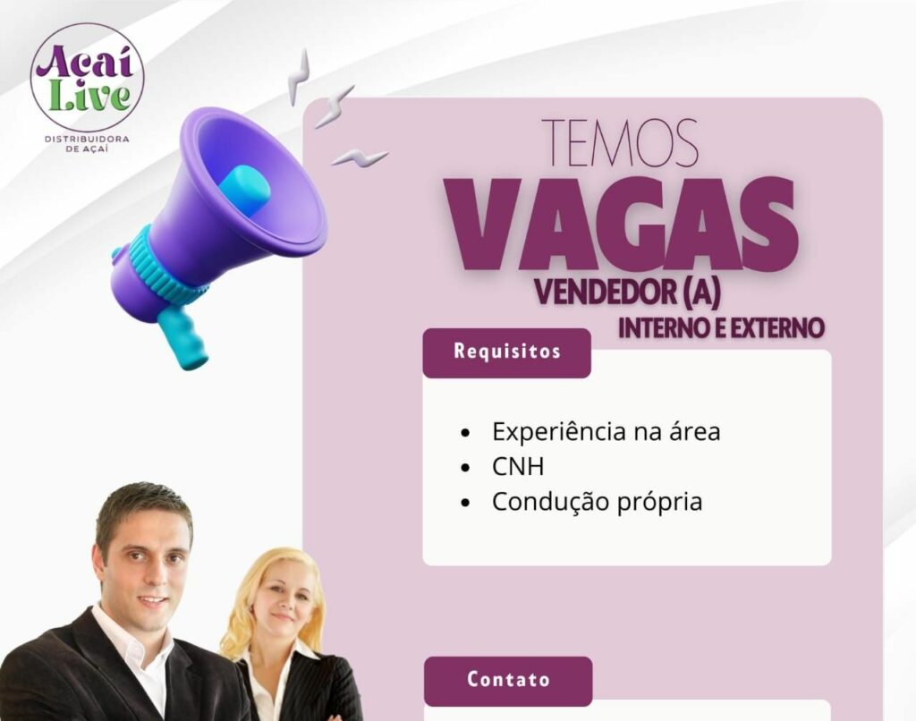 Açaí Live está selecionando Vendedor (a) interno e externo; Envie seu currículo!