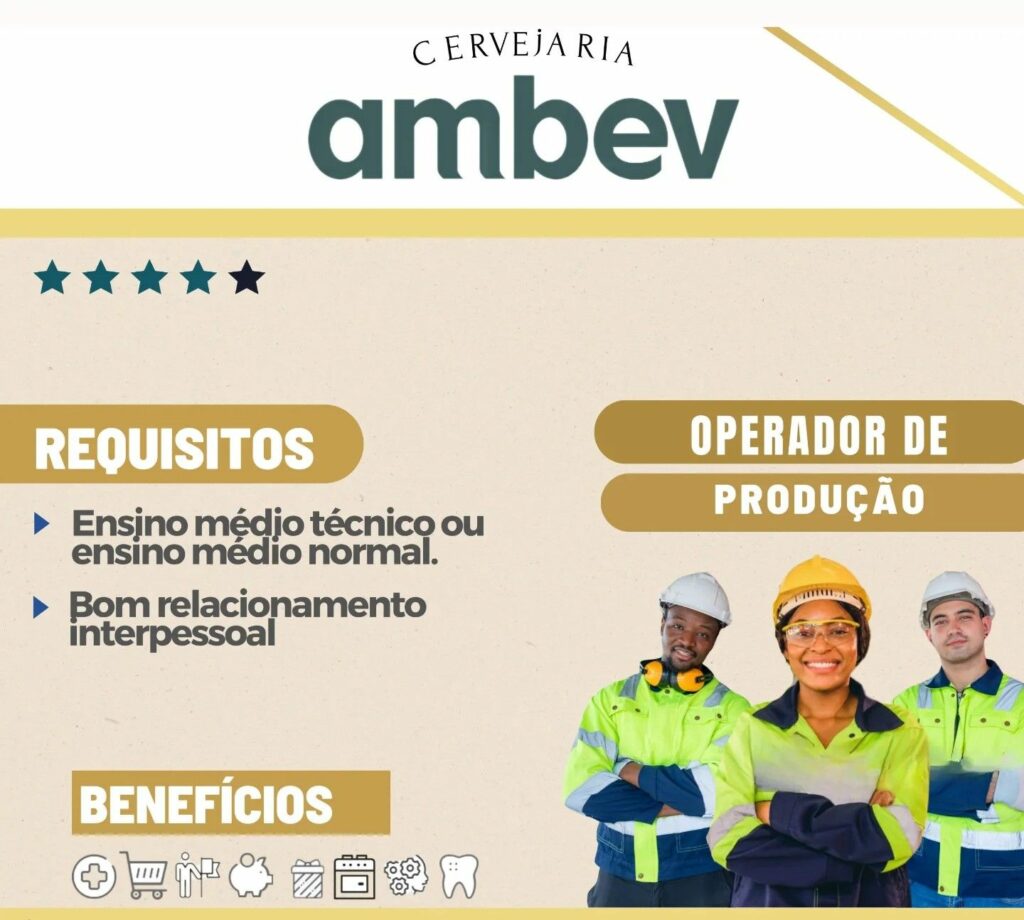 Ambev cervejaria seleciona Operador de produção, Conferente de armazém; Envie seu currículo!