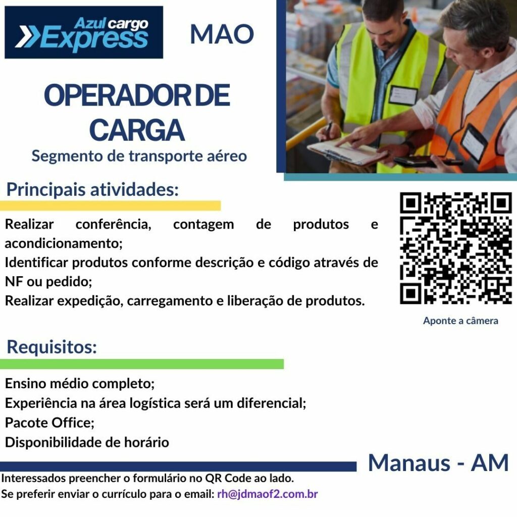 Azul cargo express seleciona Operador de carga; Envie seu currículo!