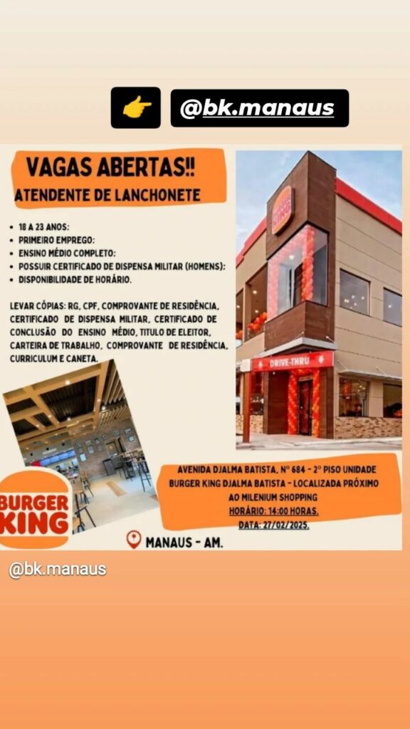 Burger King está selecionando Atendente de lanchonete; Envie seu currículo!