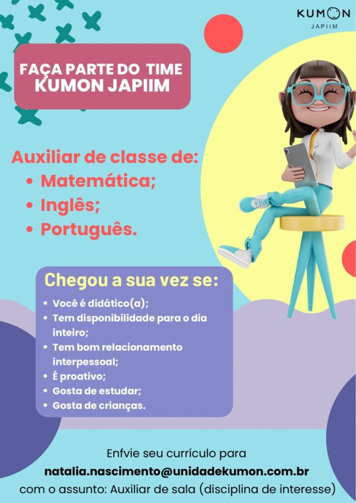 Centro educacional seleciona Auxiliar de classe de matemática, inglês, português; Envie seu currículo!
