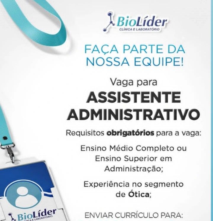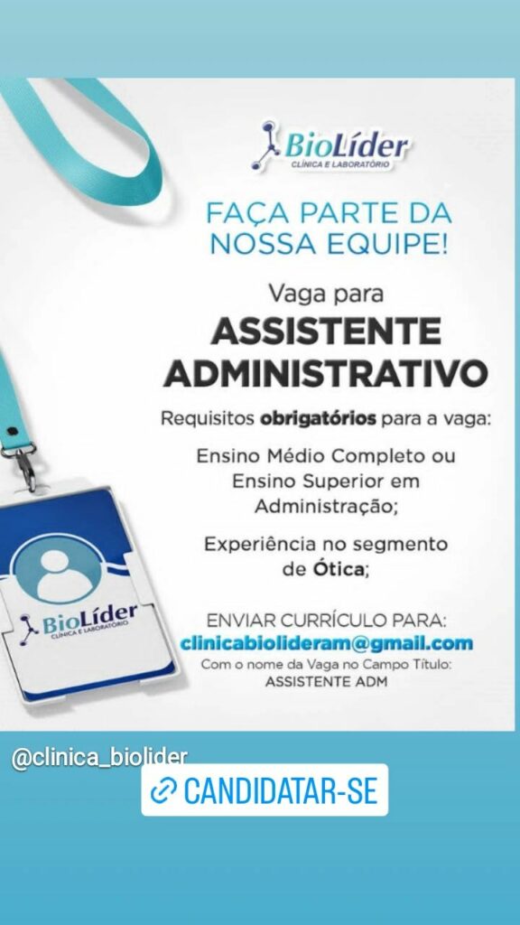 Clínica está selecionando Assistente administrativo; Envie seu currículo!