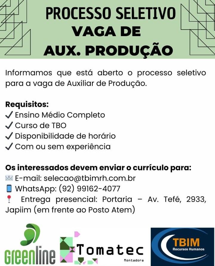Com ou sem experiência RH está selecionando Auxiliar de produção; Envie seu currículo!
