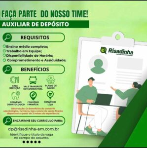 Comercial Risadinha seleciona Auxiliar de depósito, Ajudante de Motorista, Auxiliar contábil; Envie seu currículo!