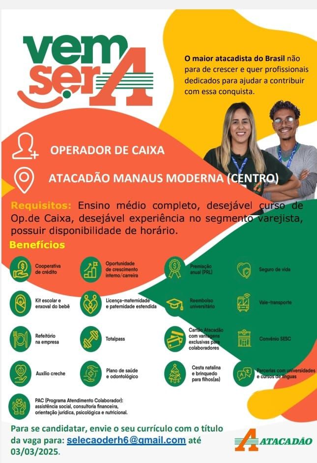 Confira as quatros oportunidades de emprego oferecido pelo Atacadão