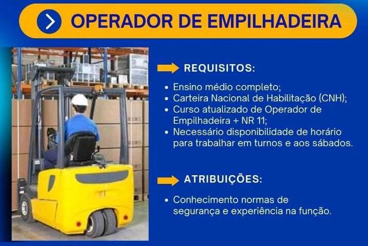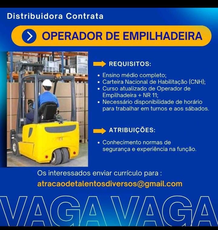 Distribuidora está selecionando Operador de empilhadeira; Envie seu currículo!
