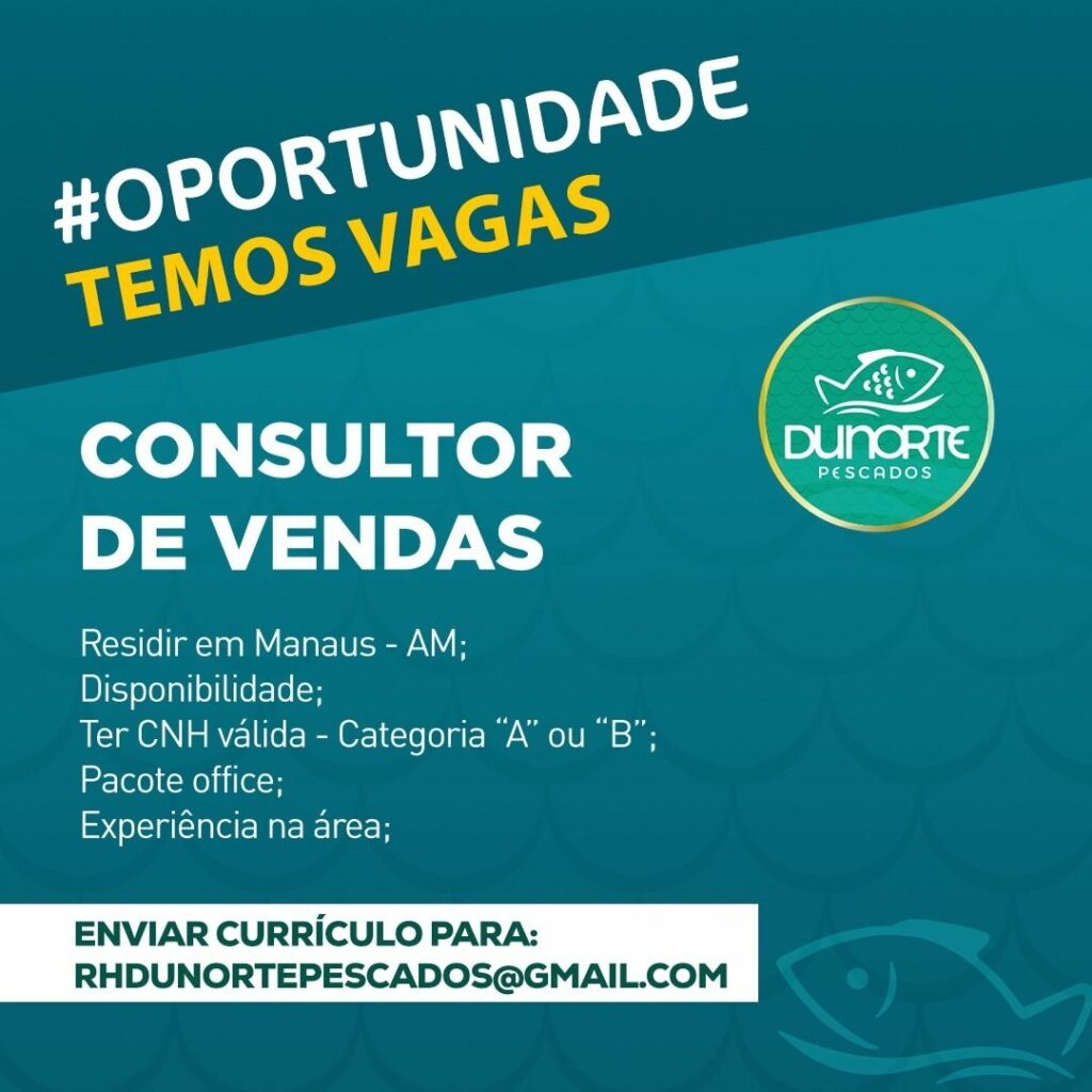 Dunorte pescados seleciona Consultor de vendas; Envie seu currículo!