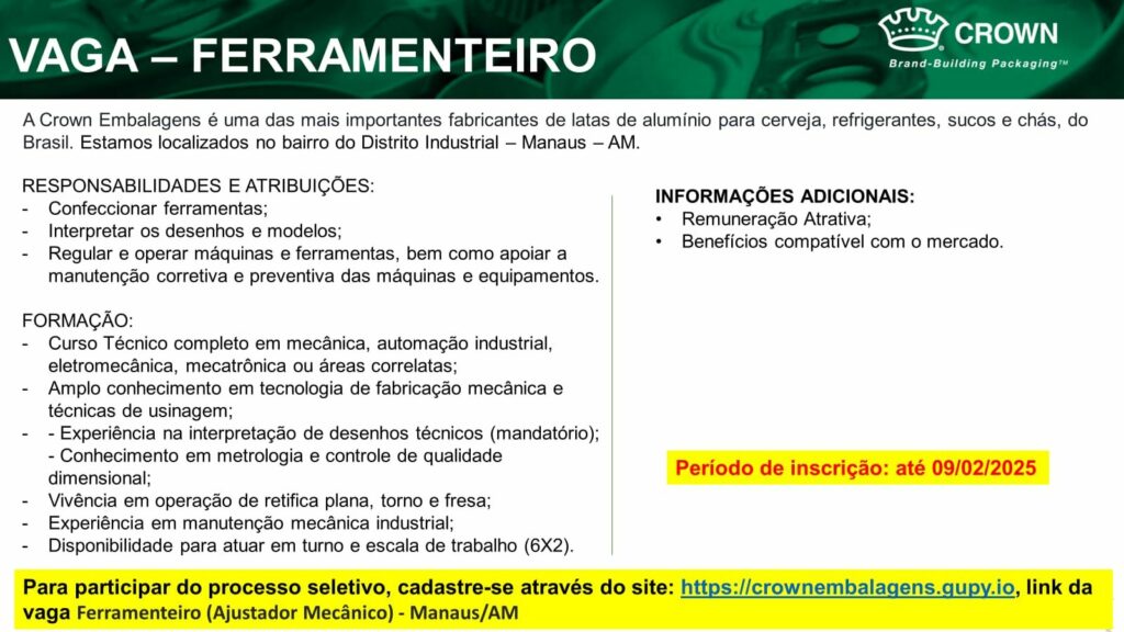 Empresa Crown Embalagens abre seleção para vagas de emprego em Manaus