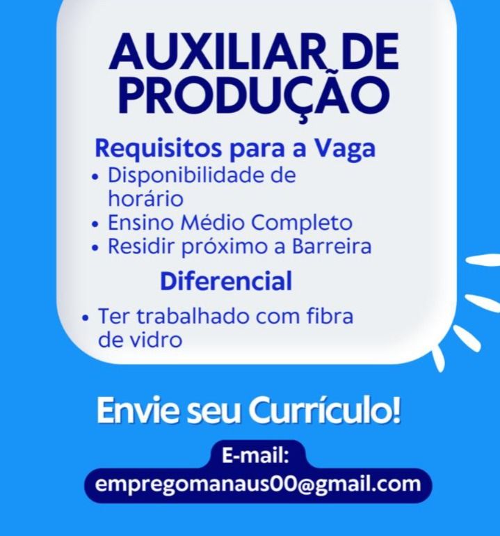 Empresa de grande porte contrata Auxiliar de produção; Envie seu currículo!