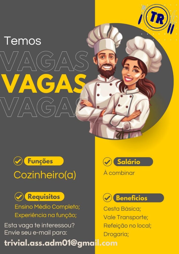Empresa de refeições seleciona Cozinheira (o); Envie seu currículo!