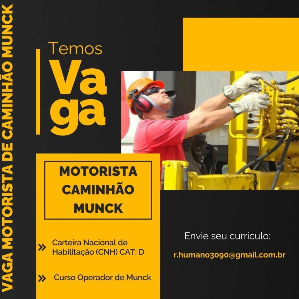 Empresa deseja contratar Motorista de caminhão munck; Envie seu currículo!