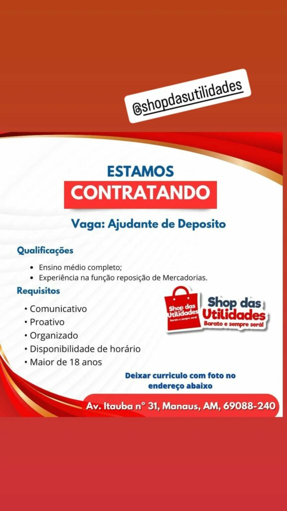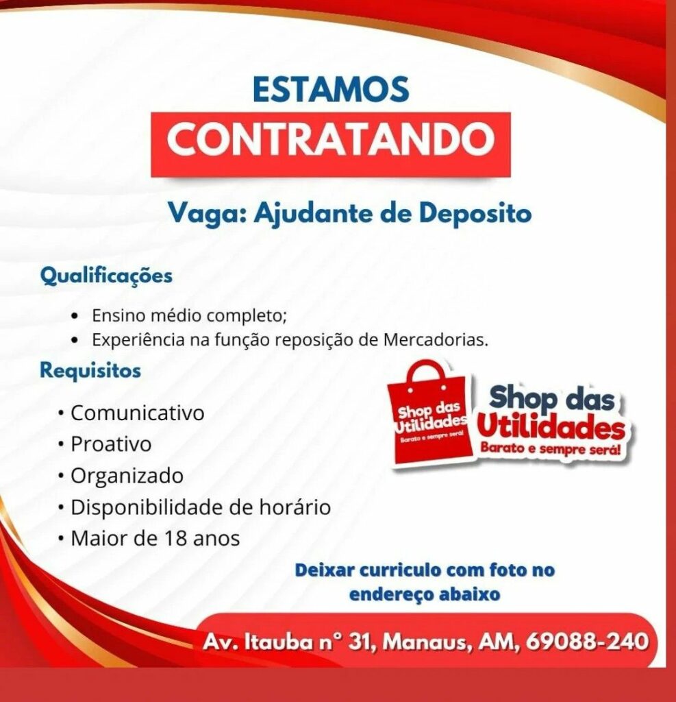 Empresa está selecionando Ajudante de depósito; Envie seu currículo!