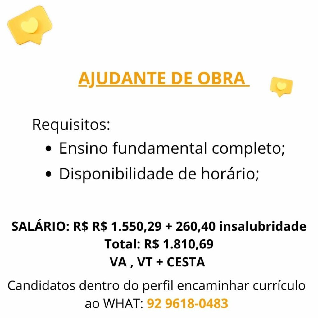 Empresa está selecionando Ajudante de obra; Envie seu currículo!