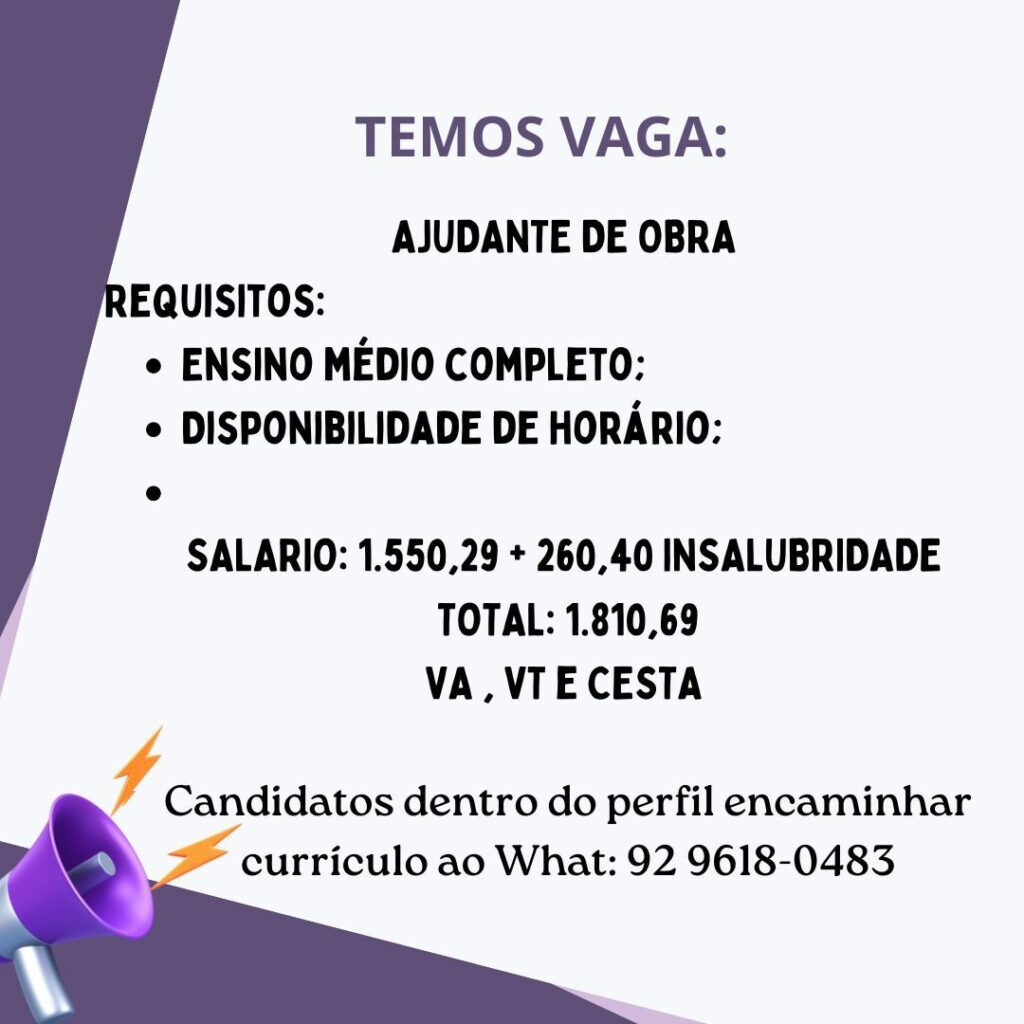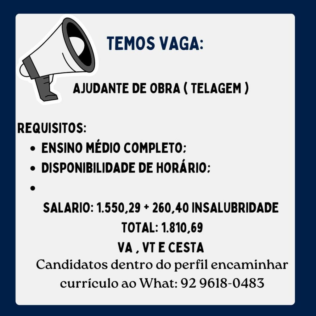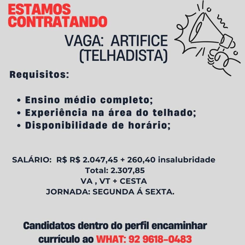 Empresa está selecionando Ajudante de obra telagem, Artífice, Ajudante de obra, Pintor letrista, Artífice telhadista, Auxiliar elétrica, Auxiliar pintura; Envie seu currículo!