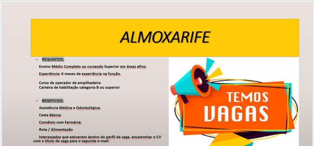 Empresa está selecionando Almoxarife; Envie seu currículo!