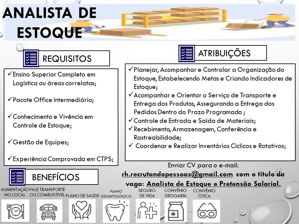 Empresa está selecionando Analista de estoque; Envie seu currículo!