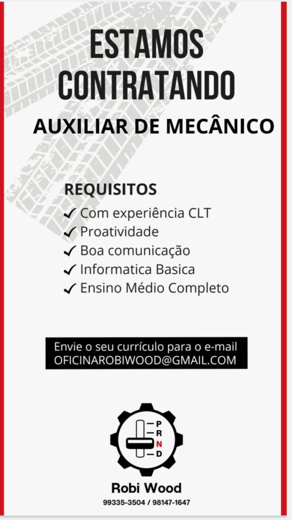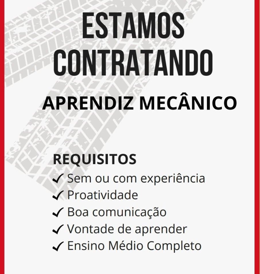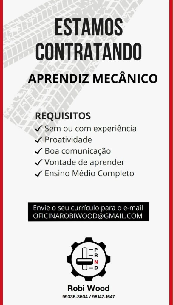 Empresa está selecionando Aprendiz mecânico, Auxiliar de mecânico; Envie seu currículo!